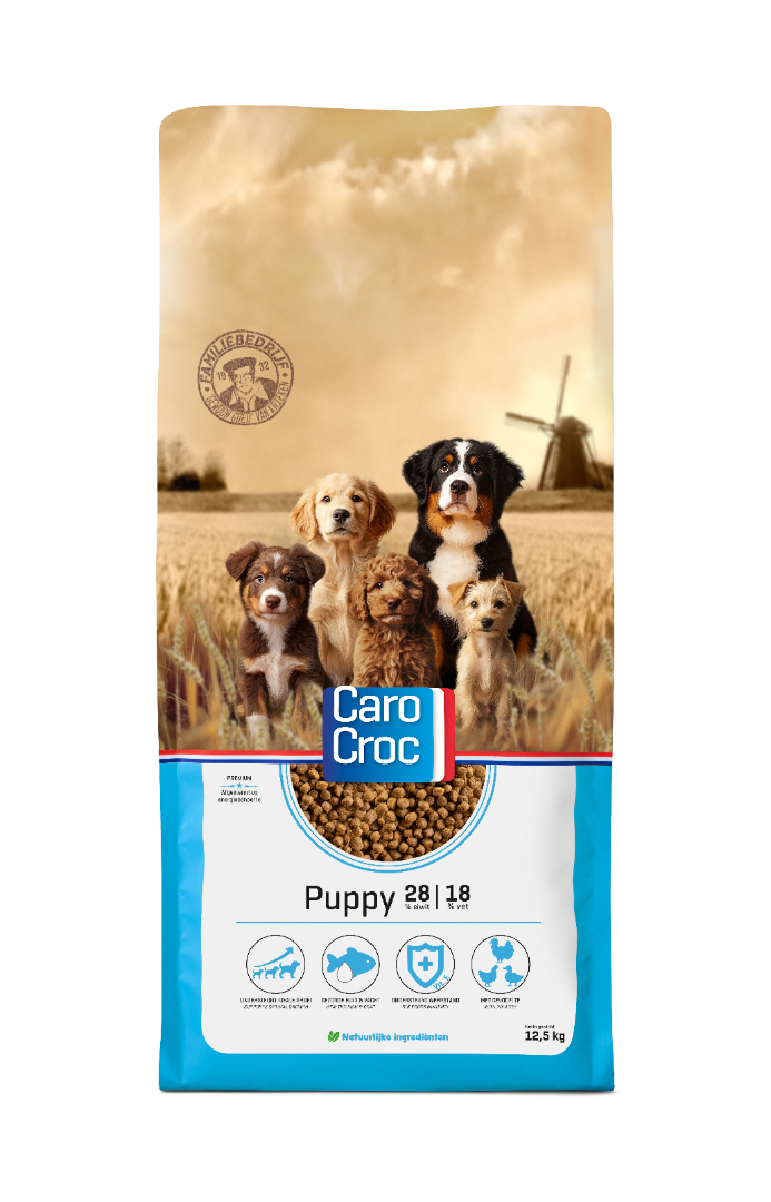 Je puppy is vanaf zijn geboorte volop in ontwikkeling. In de eerste levensfase worden het beenderstelsel, gebit, verteringsstelsel én de spieren gevormd. De keuze voor goed voer is in deze fase daarom van groot belang. De beste brokken voor je puppy? Dat moet CaroCroc Puppy zijn. Door de optimale verhouding van omega 3 en 6 vetzuren dragen deze brokken goed bij aan een gezonde huid- en vachtconditie. Daarnaast ondersteunen de ingrediënten gist en Vitamine E de weerstand van je puppy. Ook zijn de brokken licht verteerbaar. De voordelen zijn (bijna) eindeloos.