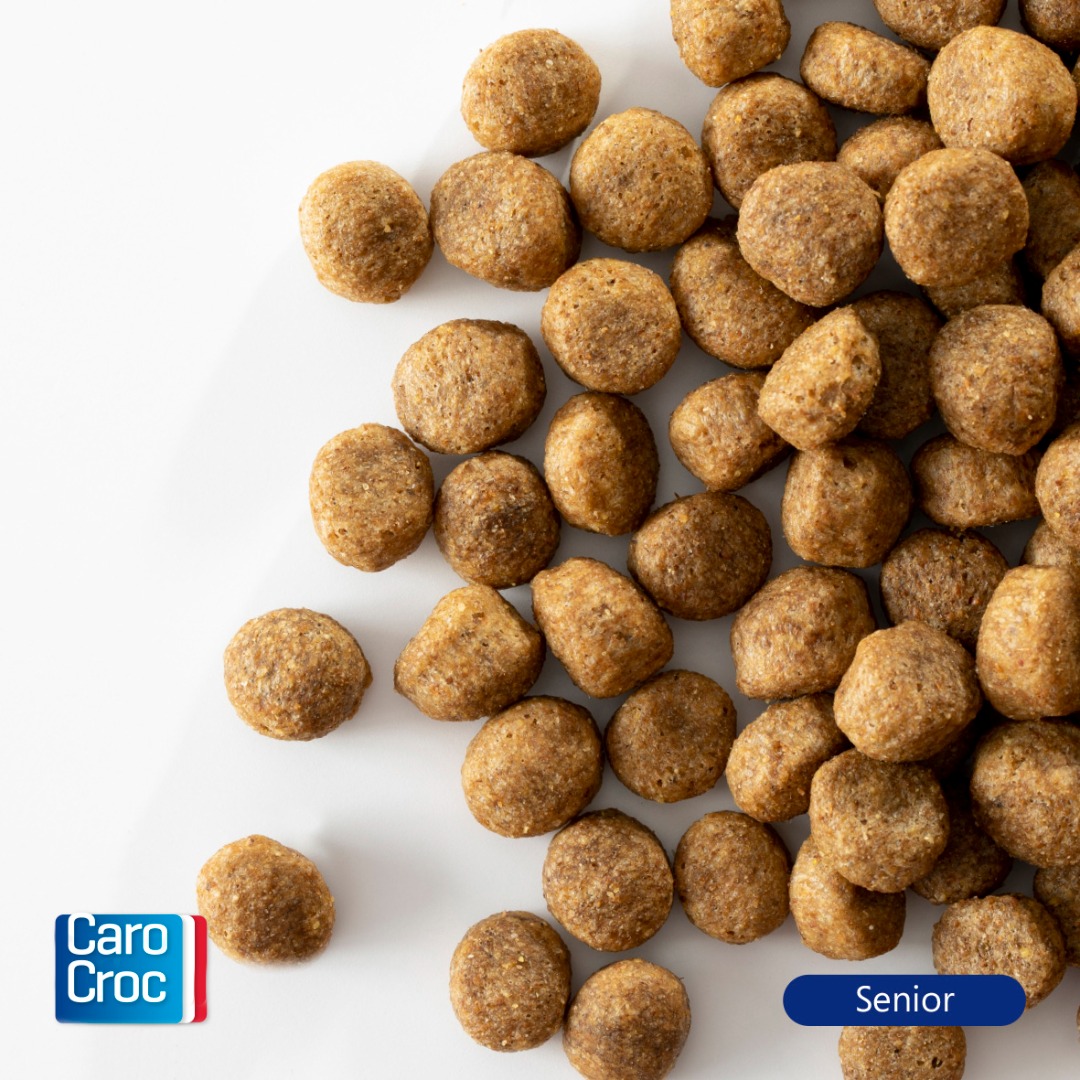 Onze CaroCroc senior brokken zijn perfect voor jouw oudere hond. Ze hebben een laag eiwit- en vetgehalte (18% eiwit en 10% vet) in vergelijking met gemiddeld voer voor volwassen honden (23% eiwit en 12% vet).