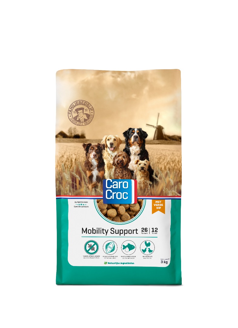 Sommige honden zijn extra gevoelig voor gewrichtsslijtage, zoals grote honden, breedgebouwde honden of honden met een lange of lage rug. Daarom is het belangrijk om hun gewrichten extra ondersteuning te bieden. CaroCroc Mobility Support ondersteunt deze honden bij het behoud van een goede lichaamsconditie.