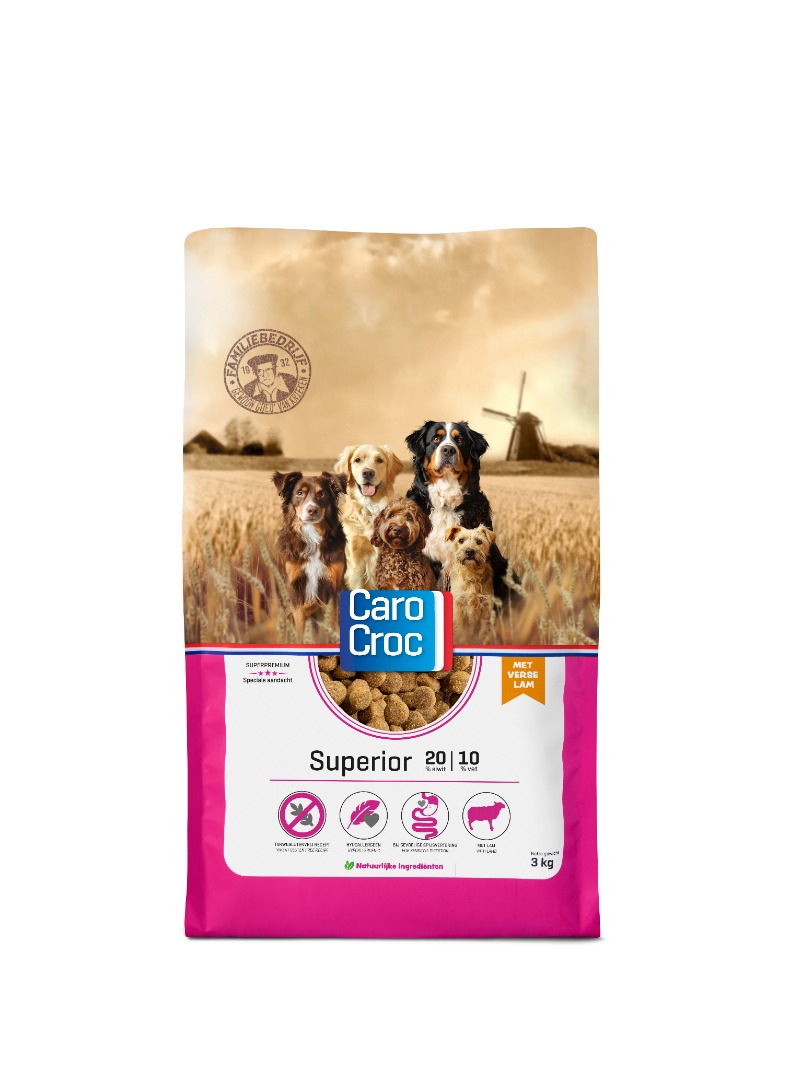 Carocroc Superior is hypoallergeen en bevat verse lam als (intacte) dierlijke eiwitbron en rijst en mais als koolhydraatbronnen. Bovendien bevat CaroCroc Superior geen tarwe(en- gluten). Dit alles zorgt voor een gezonde spijsvertering. Ook is er bietenpulp toegevoegd. Bietenpulp draagt bij aan een goede darmflora en een goede kwaliteit van de ontlasting.