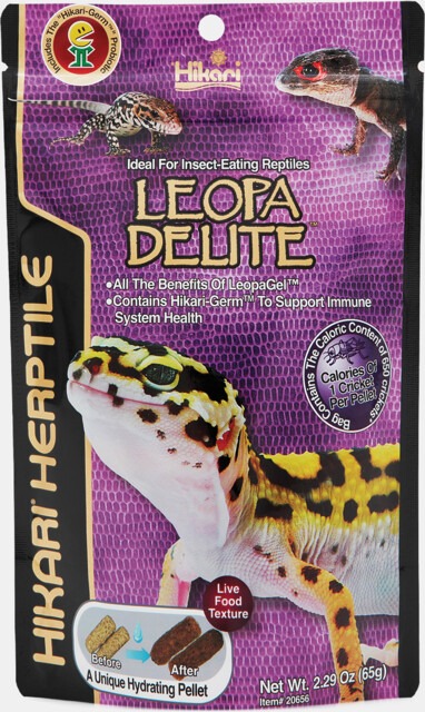 De Hikari Leopa Delite is een ideale mix van ingrediënten in een gemakkelijk te gebruiken en economische pellet. Het bevat de Hikari-Germ probiotica om het immuunsysteem en de spijsvertering te ondersteunen. Wetenschappelijk ontwikkelde formule voor insectenetende hagedissen zoals Luipaardgekko’s, en kleinere Teju’s en Varanen. Na het bevochtigen krijgen de pellets een sponsachtige structuur die aantrekkelijk is voor hagedissen en lijkt op die textuur van levende insecten. Door de grote smakelijkheid wordt de pallet relatief eenvoudig geaccepteerd ook door dieren die normaal niet snel een pallet zouden pakken. 1 pellet bevat ongeveer evenveel calorieën als 1 krekel van 2 cm. Week de pellets 3 tot 5 minuten in water voor het voeren. Voor jonge dieren dagelijks en volwassen dieren elke 2-3 dagen